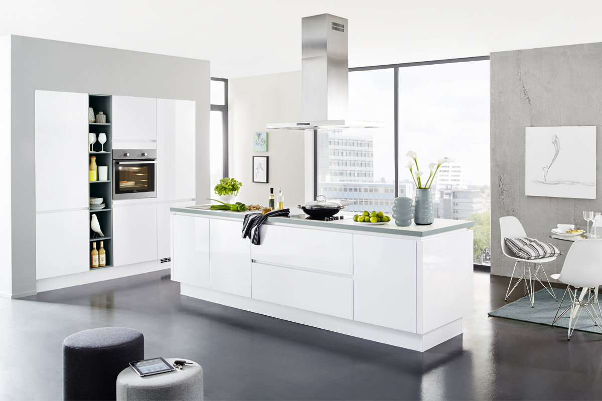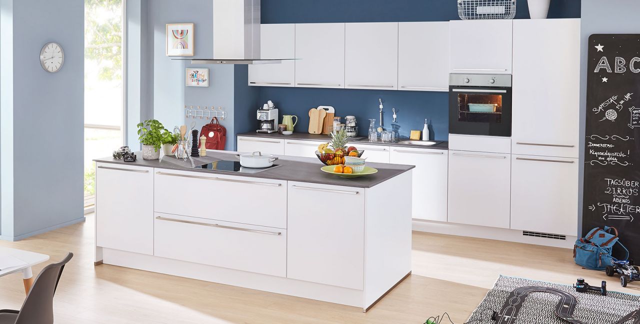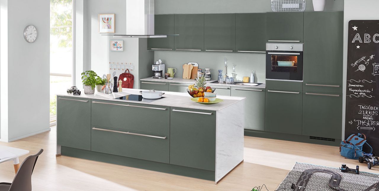 Inklusive Einbaubackofen Edelstahl Laurus LEB3 Energieeffizienzklasse A, Glaskeramik Kochfeld Laurus LCA600, Inselesse Edelstahl / Glas Elica TRIBE INSEL-A Energieeffizienzklasse A, Kühlschrank Laurus LKG88E Energieeffizienzklasse E, Einbauspüle Edelstahl Rodi Okio Line 85 Deep, Unterschrank mit Großraumauszügen.